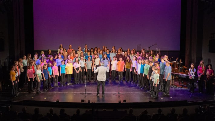 Die 91 Kinder der 4 Musikklassen legten viel Herzblut und Begeisterung in ihre Darbietungen anlässlich des 50-jährigen Jubiläums des Musikschwerpunktes Mittelschule Bregenz-Stadt.